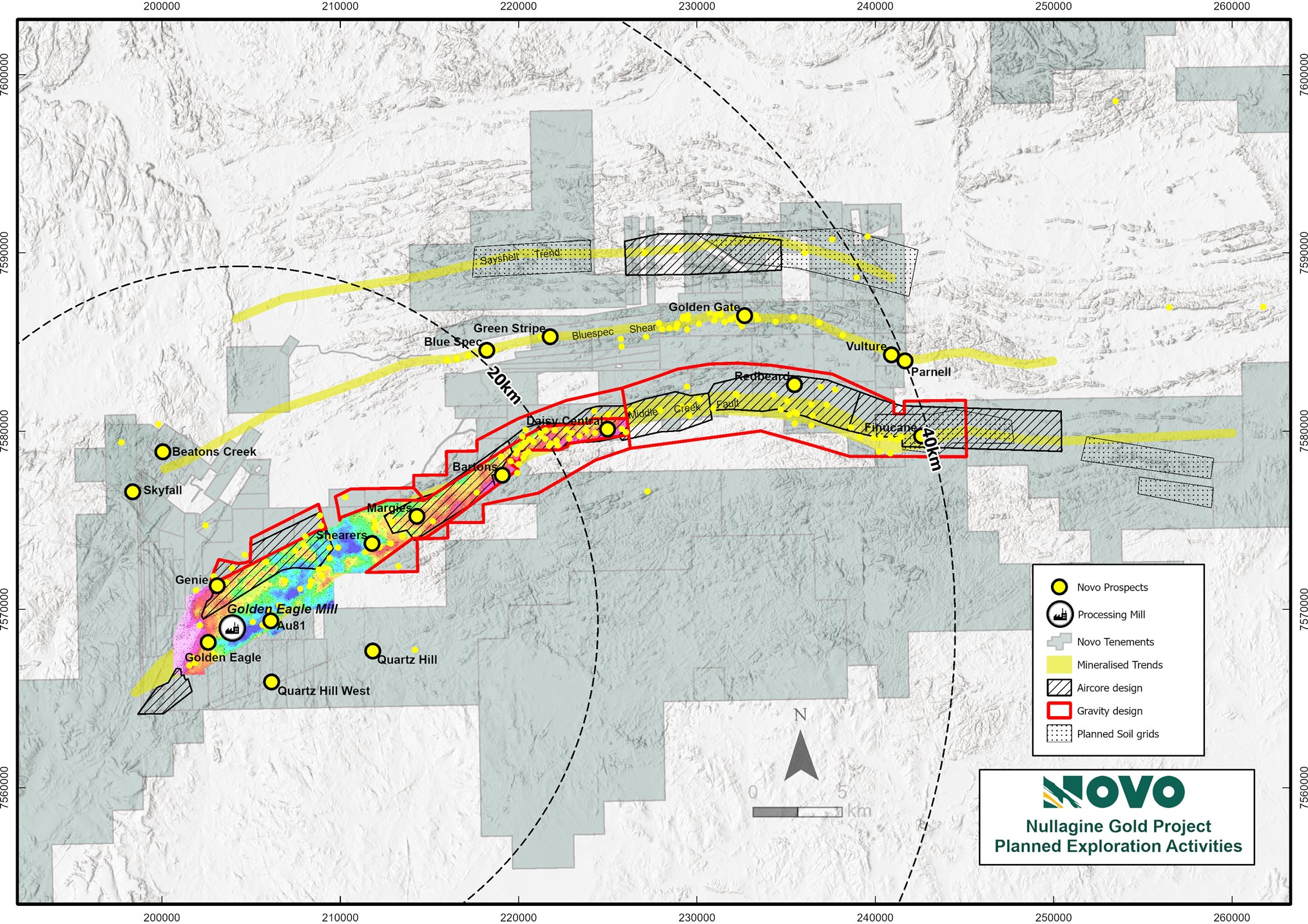 Highest priority historical satellite oxide resources in the MCB have now been fully appraised, with only a handful of low tenor prospects delineated. Novo is progressing a step change exploration approach to rapidly provide additional oxide targets for potential future mill feed as part of the NGP.