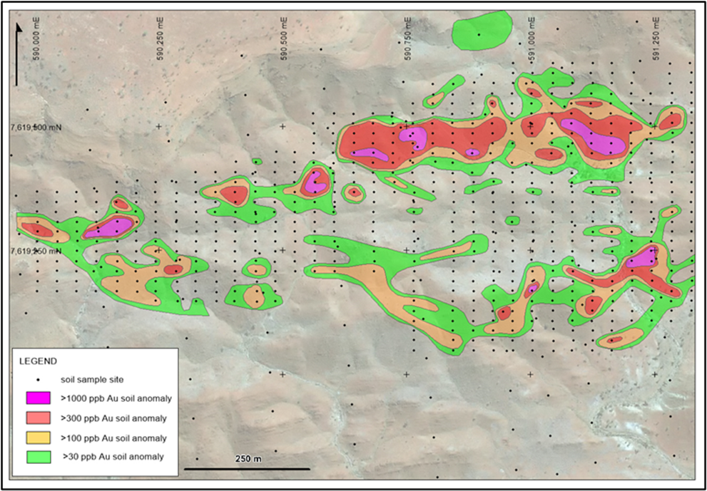 Results of soil sampling and high-resolution gravity data, in conjunction with existing datasets such as high-resolution aerial aeromagnetics and radiometrics, and hyperspectral HyMapperTM data will be used to identify additional drill targets. This study is expected to not only define new prior undefined targets but extend and upgrade new mineralized structural trends such as the Genie corridor and the Sayshell structural trend. This drilling is expected to take place subsequently to infill and extensional drilling at targets such as Daisy Central.