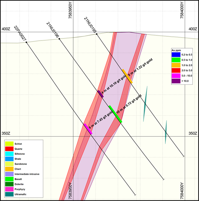 - 2 m at 10.74 g/t gold from 57 m in 22PA0048