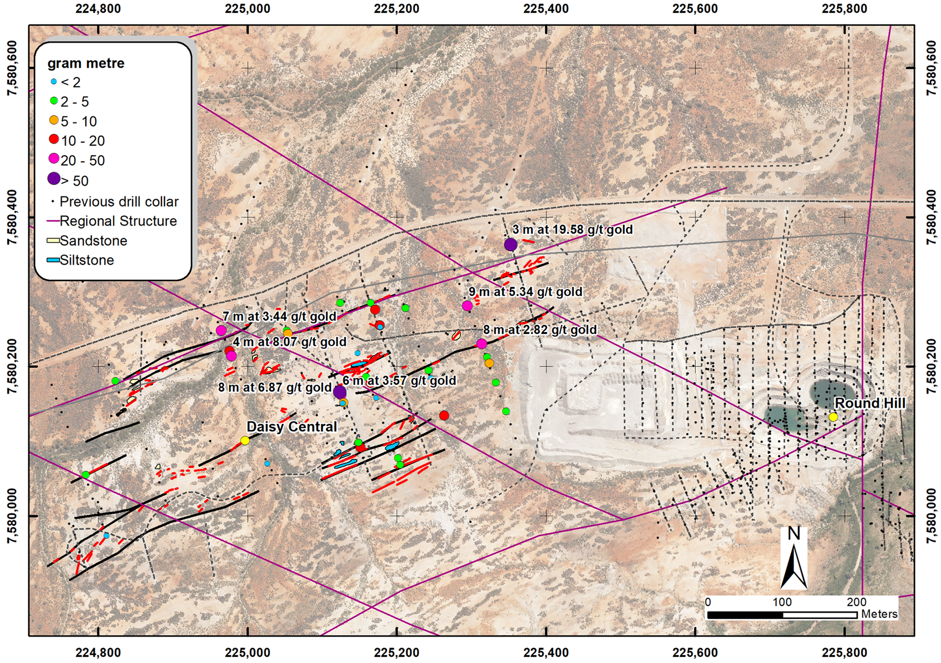 3D geological modelling of the preliminary mineralized trends has been completed, and Daisy Central is now ready for infill and extensional RC drilling, with relevant approvals in place. Drilling will take place in H1 2023 when additional targets can be determined from the additional geophysical and structural mapping programs currently underway.