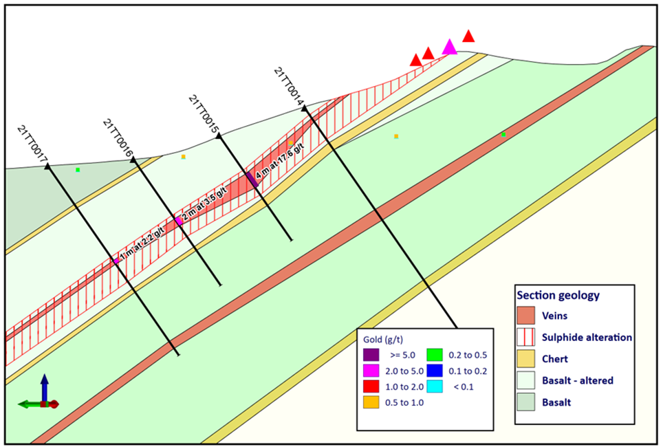 - 5 m at 7.33 g/t gold from 45 m in 22GN0016
