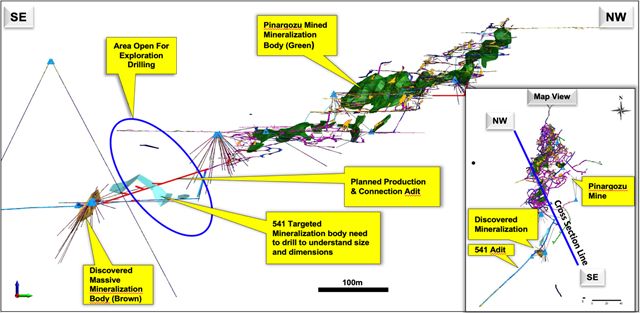 Please see the Company’s website for several photos and schematics from the recent exploration and development program at Pinargozu. The below schematics provide views of the Pinargozu mine and the Fourth Adit.