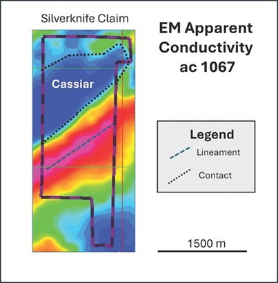 Figure 4b: Electromagnetic apparent conductivity at 1067 Hz in the Silverknife region (After EGL, 2024).