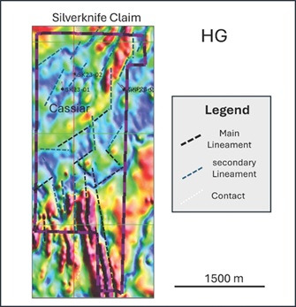 Figure 2b: Horizontal Gradient (HG) with lineament interpretation in the Silverknife region (After Precision, 2024).