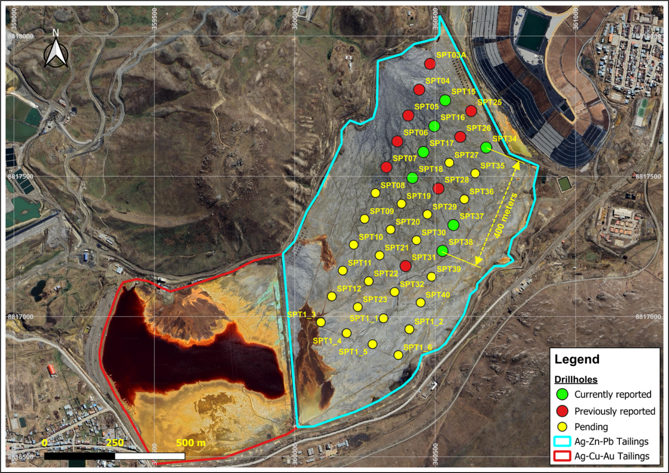 The Quiulacocha Tailings Storage Facility covers approximately 115 hectares and is estimated to hold approximately 75 million tonnes of material processed from the 1920s to 1990s.