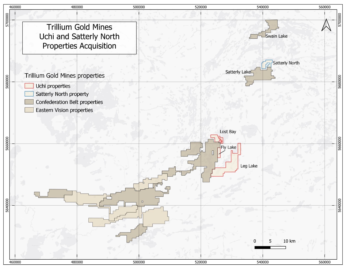 VANCOUVER, British Columbia, April 05, 2022 (GLOBE NEWSWIRE) -- Trillium Gold Mines Inc. (TSXV:TGM, OTCQX:TGLDF, FRA:0702) (“Trillium Gold” or the “Company”) is pleased to announce that it has signed two purchase option agreements in respect of the Uchi Gold Project (the “Uchi Gold Agreement”) and the Satterly Gold Project, (the “Satterly Gold Agreement”, together with the Uchi Gold Agreement, the “Agreements”), to acquire a 100% undivided interest in the respective areas within the Confederation greenstone belt.