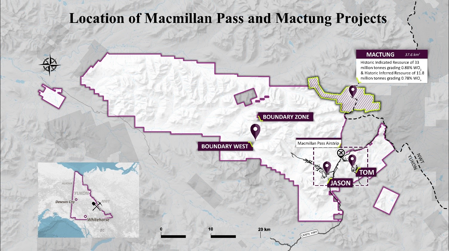 - Mactung Tungsten Project: The Company has a binding Letter of Intent to acquire 100% interest in the 37.6 km2 Mactung Tungsten Project located adjacent to the Macmillan Pass Project. Mactung contains historic resources that make it one of the largest and highest-grade undeveloped tungsten resources in the world. Located in Canada, it is one of the rare large tungsten resources outside of China.