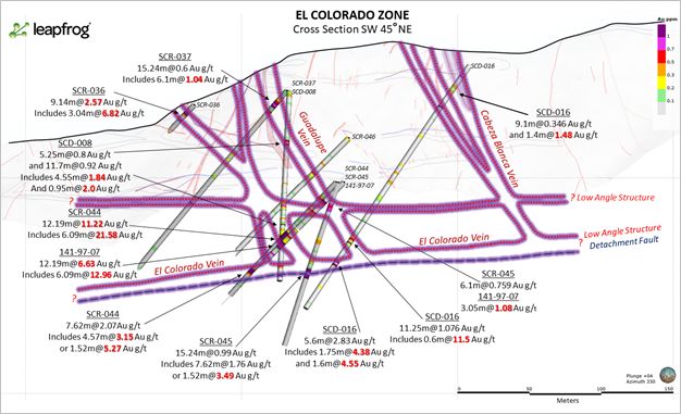 - SCD-023 intercepted 8.45 m averaging 1.4 g/t Au, including 1.85 m averaging 4.76 g/t Au,
