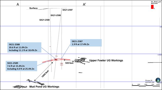 Surface drilling has discovered Little York, a new zone of high-grade zinc mineralization between Mud Pond, currently an active mining area, and the historically mined Upper Fowler zone.