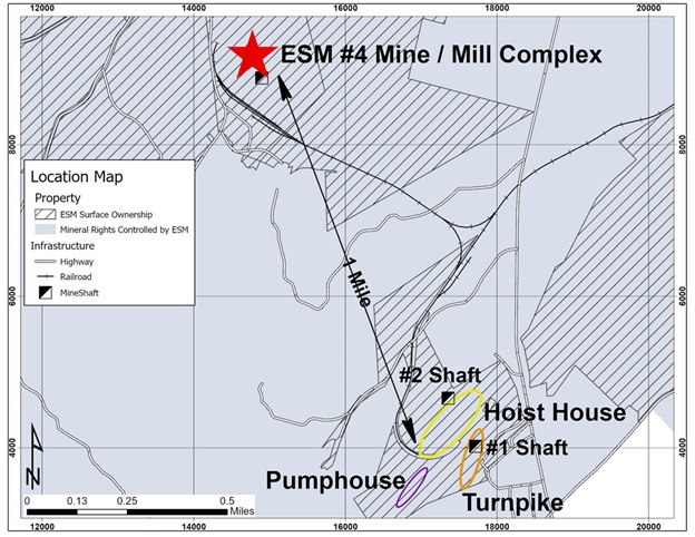 Scott Burkett, Vice President, Exploration, commented, “Drilling on Pumphouse, Hoist House and Turnpike Zones is complete and has confirmed the continuity and tenor of mineralization, along strike and down-dip for all three zones. Based on the drill hole results, ESM anticipates that the near surface mineralization will support open pit mining and provide incremental feed to the under-utilized mill at ESM.”