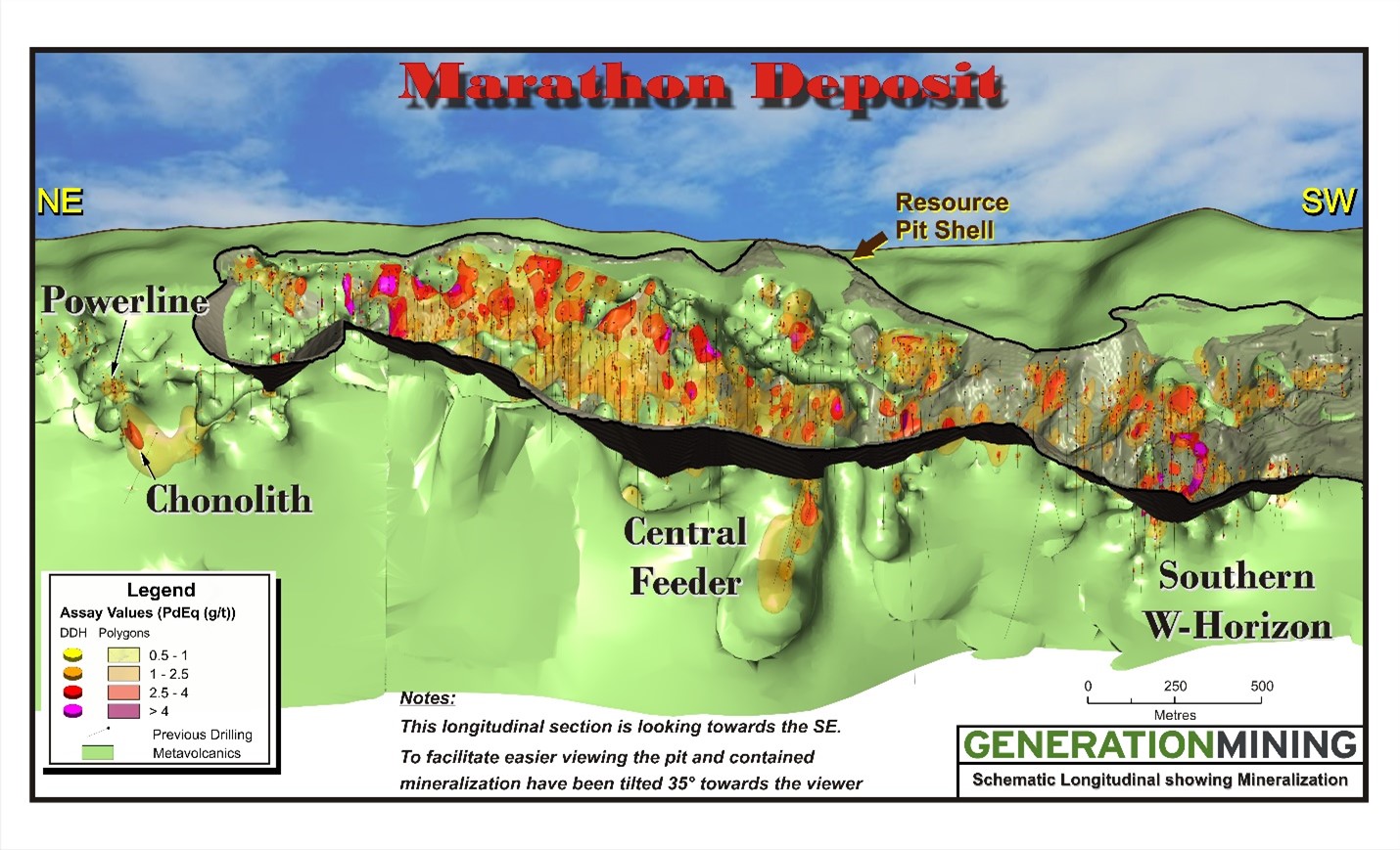 Gen Mining’s CEO Jamie Levy stated, “The Marathon property continues to exceed expectations in terms of its exploration potential. This discovery of high-grade copper and palladium assays in near surface drill intercepts on trend from the Marathon Deposit demonstrates the potential for resource expansion and a longer mine life”.