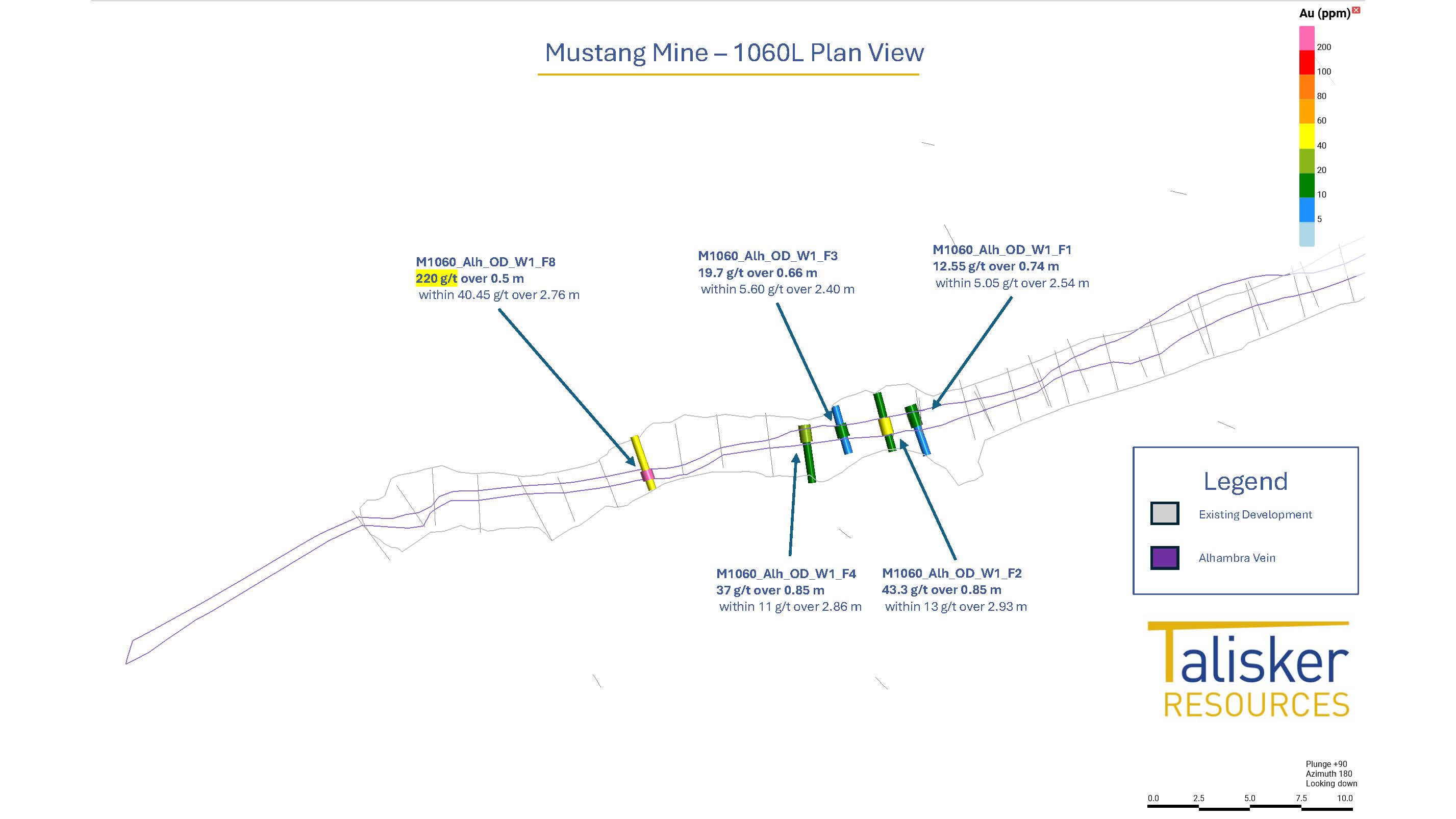 Terry Harbort, CEO of Talisker, stated, “The Alhambra Vein continues to deliver consistent high-grade results now extending down to the 1060 level. With our first production stope situated above these samples reaching up to the 1075 level we are excited to complete the extraction of this material. Talisker expects to receive results of the face sampling from the 1120 level, some 60 metres above the 1060 before the end of the month.”
