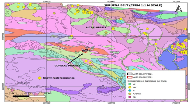 Figure 3: Location of the Copecal Gold Project within the prolific Juruena Gold Belt