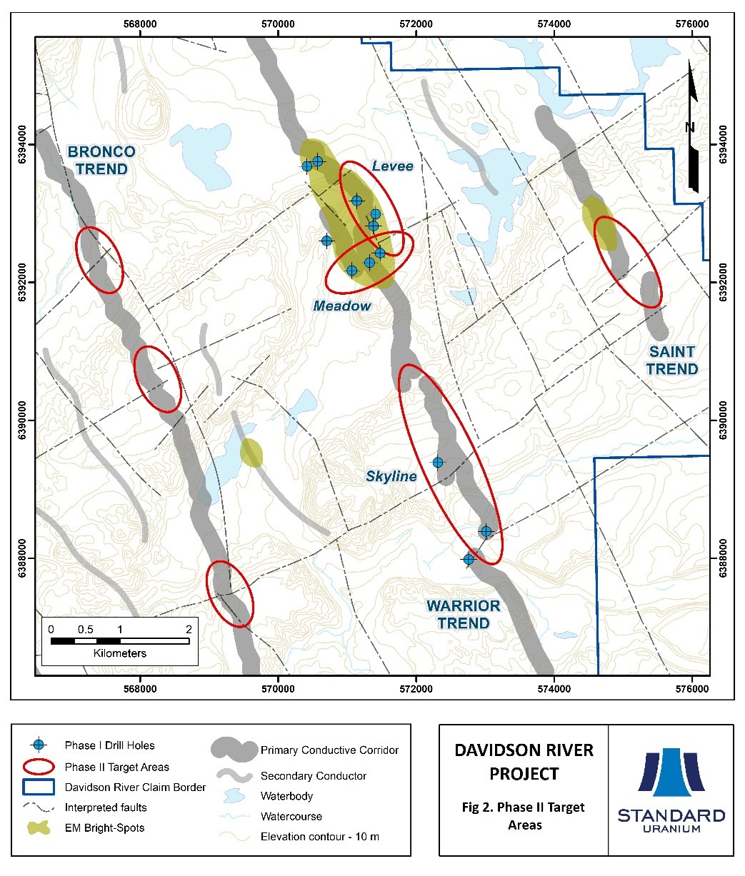 VANCOUVER, British Columbia, Dec. 29, 2020 (GLOBE NEWSWIRE) -- Standard Uranium Ltd. (“Standard Uranium” or the “Company”) (TSX-V: STND) (Frankfurt: FWB:9SU) is pleased to announce the Phase II 2021 winter exploration program will commence at its flagship 25,886-hectare Davidson River Uranium Project (the “Project”) on February 1st, 2021, dependent upon the COVID-19 status. The program will consist of approximately 5,850 m of diamond drilling in 13 holes. The Project is located in the Southwest Athabasca Uranium District of Saskatchewan and encapsulates an inferred trend 25 km to 30 km to the west of Fission Uranium’s Triple R and NexGen’s Arrow deposits. (Figure 1).