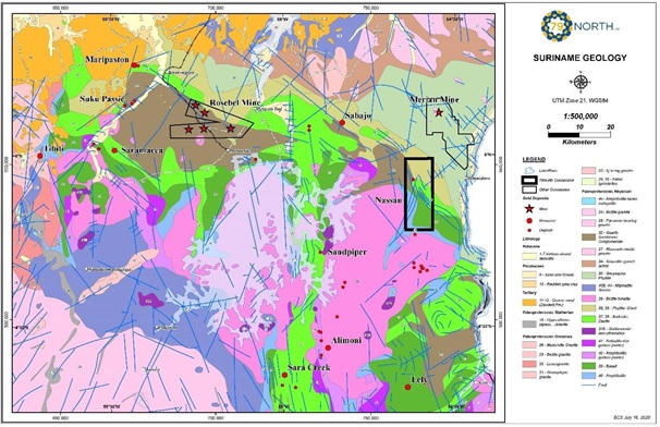 “We have narrowed down four exploration targets at Nassau to focus initial exploration on gold deposit-sized geologic, geochemical, and geophysical anomalies. Our job as explorers is to define quality gold exploration targets within the regional setting of gold deposits in Suriname, and it has been relatively easy to do this with so much prospective geology at the Nassau gold project,” stated Jon North, Ph.D., P.Geo., Chief Executive Officer. “Such a large property in such highly prospective terrane will undoubtedly reveal additional targets as we commence exploration and complete a property-wide LiDAR survey and we look forward to reporting our progress in future press releases.”