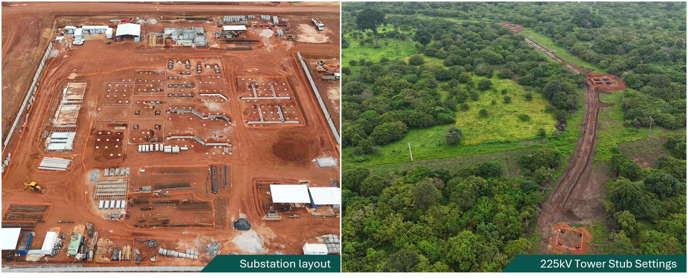 - Grid connection civil works are ongoing on the 225kV to 33kV reticulation with transformer walls and exterior block wall construction also ongoing. Excavation of the footings of 17 towers for the 225kV power line have been completed, with concrete and stub settings now complete on 11 of the towers. Underground conduits for high voltage electrical cables are well advanced, connecting key processing and administrative buildings, while pole installations for the 33kV overhead line to key infrastructure sites are also well progressed.