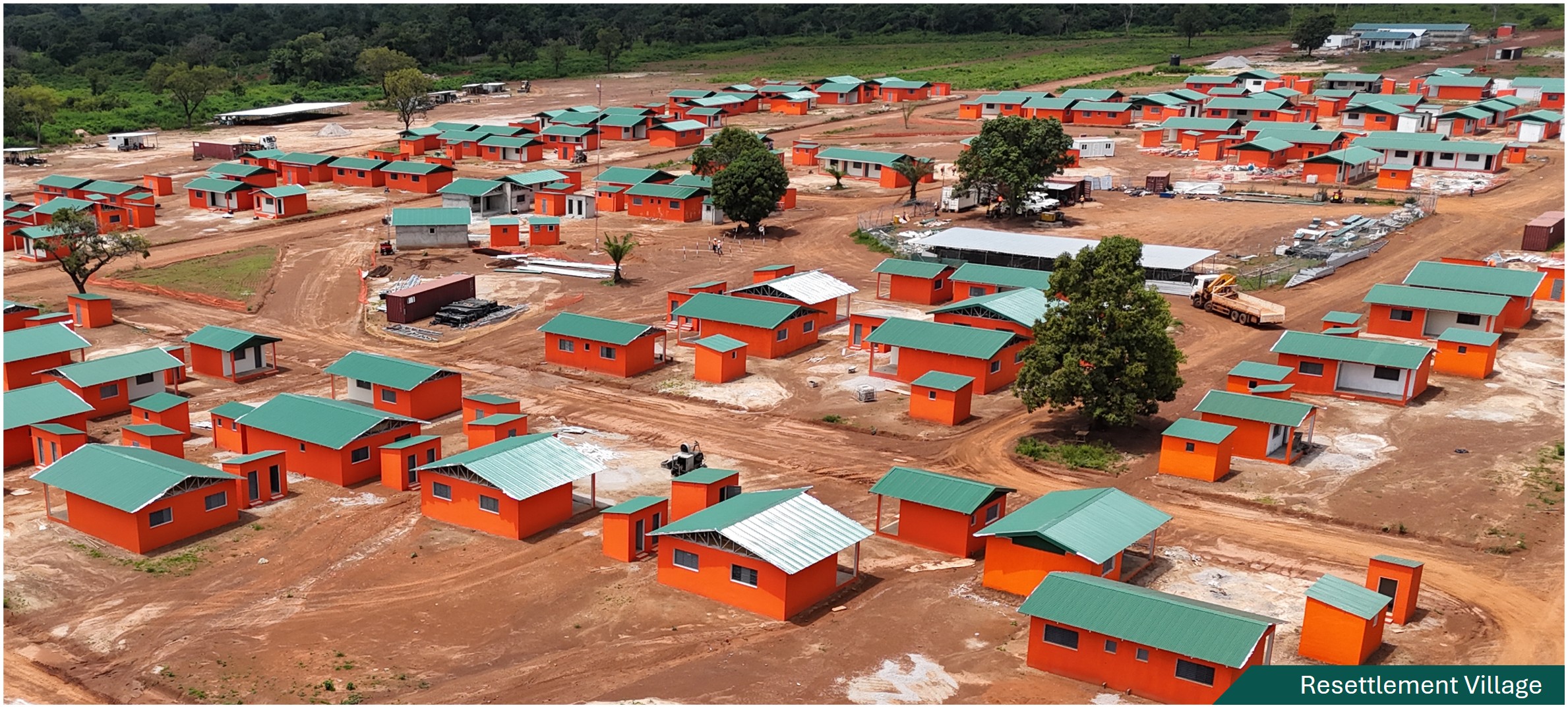 - Resettlement village construction is now over 95% complete and tracking over two months ahead of schedule, with 109 newly-built homes in the final stages of construction. Final preparations for the formal handover of homes to affected families is ongoing, with the first families expected to inhabit the newly constructed village in the coming weeks. Further progress continues to be made on construction of the village school and on places of worship, as well as clinics, a market and a community centre.