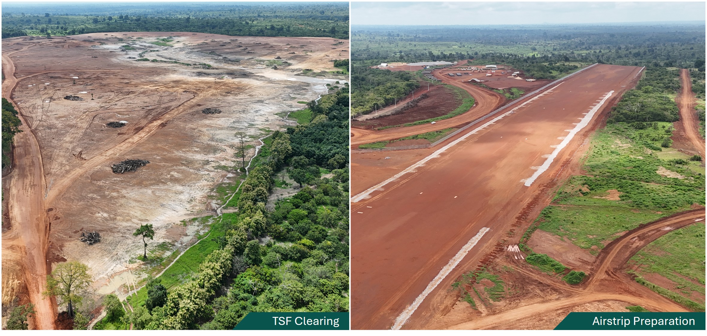 - Tailings Storage Facility (“TSF”) earthworks continue to progress approximately 3 months ahead of schedule with bush clearing, topsoil stripping and stacking taking place. The TSF liner has arrived on site with installation scheduled to begin in Q4-2025, after the rainy season.