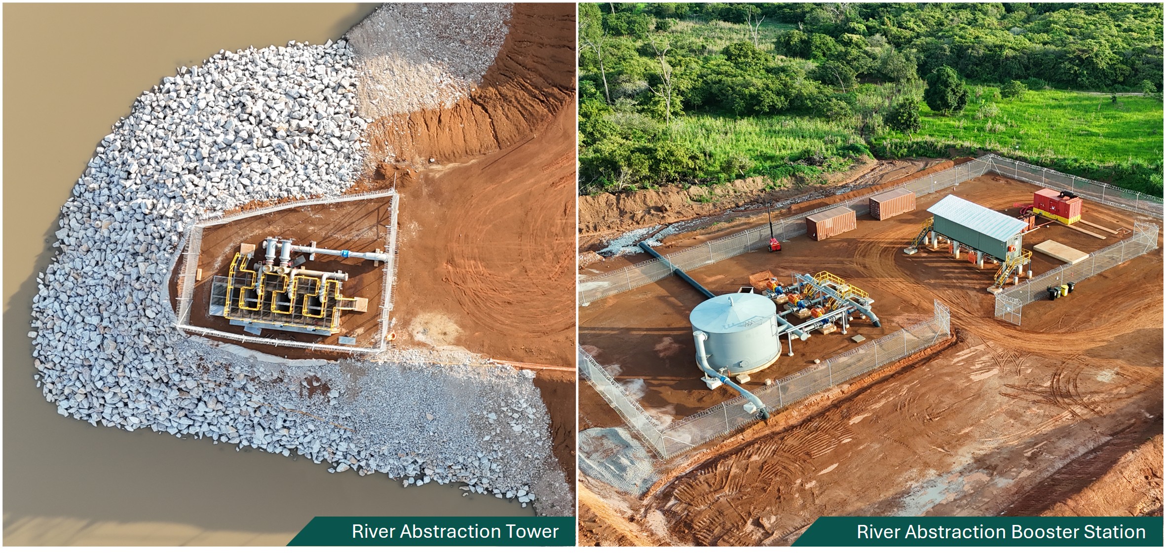 - Water supply infrastructure was completed following the commissioning of the river abstraction and booster stations in August 2025, alongside completion of welding of the high-density polyethylene pipes which has allowed for water to be pumped to the Water Storage Facility.
