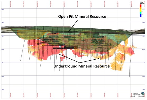 - The initial Mineral Resource estimate assumes both open pit and underground mining and extends from surface to a depth of 350 meters.