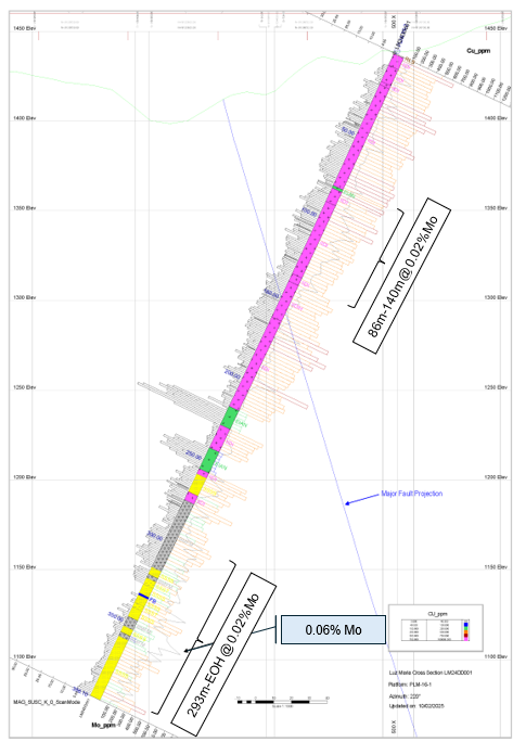 TORONTO, Feb. 12, 2025 (GLOBE NEWSWIRE) -- Western Metallica Resources Corp. (TSXV: WMS) (“Western Metallica” or the “Company”) is pleased to report results from its inaugural scout drilling program at the Luz Maria copper-molybdenum target, located within the Company’s 100%-owned Caña Brava Project, Northern Peru. Full results from the three initial drill holes have been received, confirming homogeneous copper and molybdenum grades throughout. The increase in sulfide content, and the change from disseminated pyrrhotite dominated mineralization in drill holes LM24DD001 and LM24DD002, to a stockwork of sulfide (pyrrhotite-pyrite-molybdenite-chalcopyrite) veinlets in drill hole LM24DD003, suggests an eastward vector towards a hotter centre of the porphyry system. Such evidence confirms the prospectivity for a major porphyry style copper-molybdenum deposit, as similar signatures can be associated with large and economic copper systems along the Andean Belt.