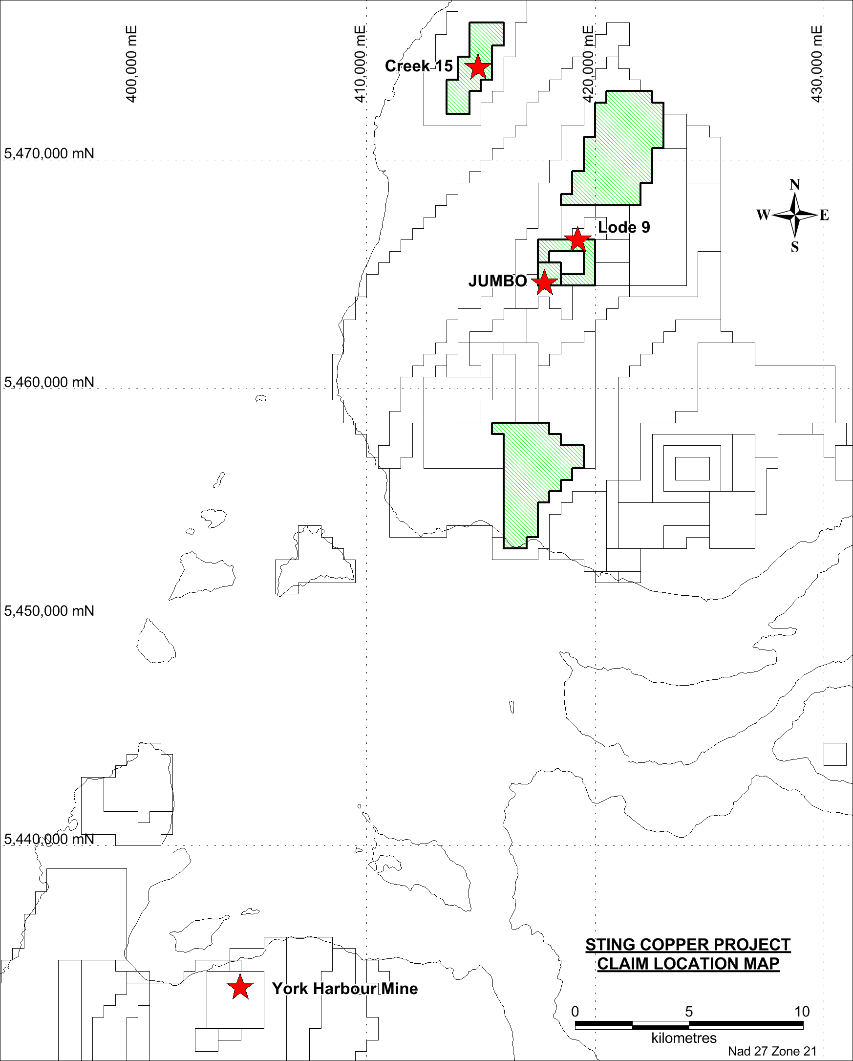 Vital is targeting high grade copper and precious metals in western Newfoundland on its Sting Copper Project. This news release covers additional rock sample results from the first pass at Jumbo Lode Prospect, the most significant occurrence within the Sting Copper Project. The mafic rocks that underlie the Jumbo Lode Prospect are part of the Bay of Islands Complex that is host to high grade copper and copper/zinc deposits including the York Harbour Mine, a former producer located 35 km to the south-southeast.