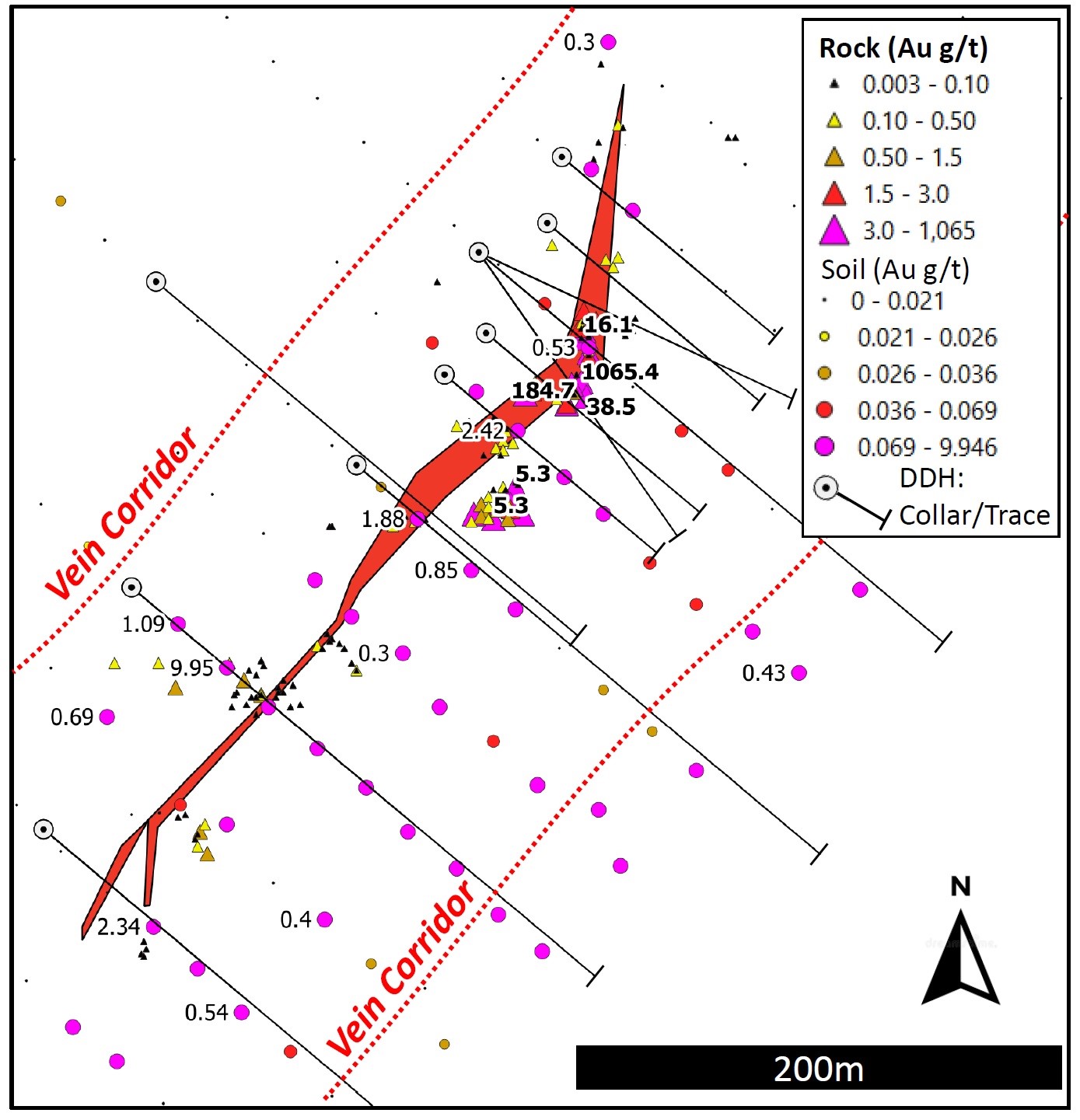 - Initial drilling will focus on the area of visible gold occurrences at Big Vein.