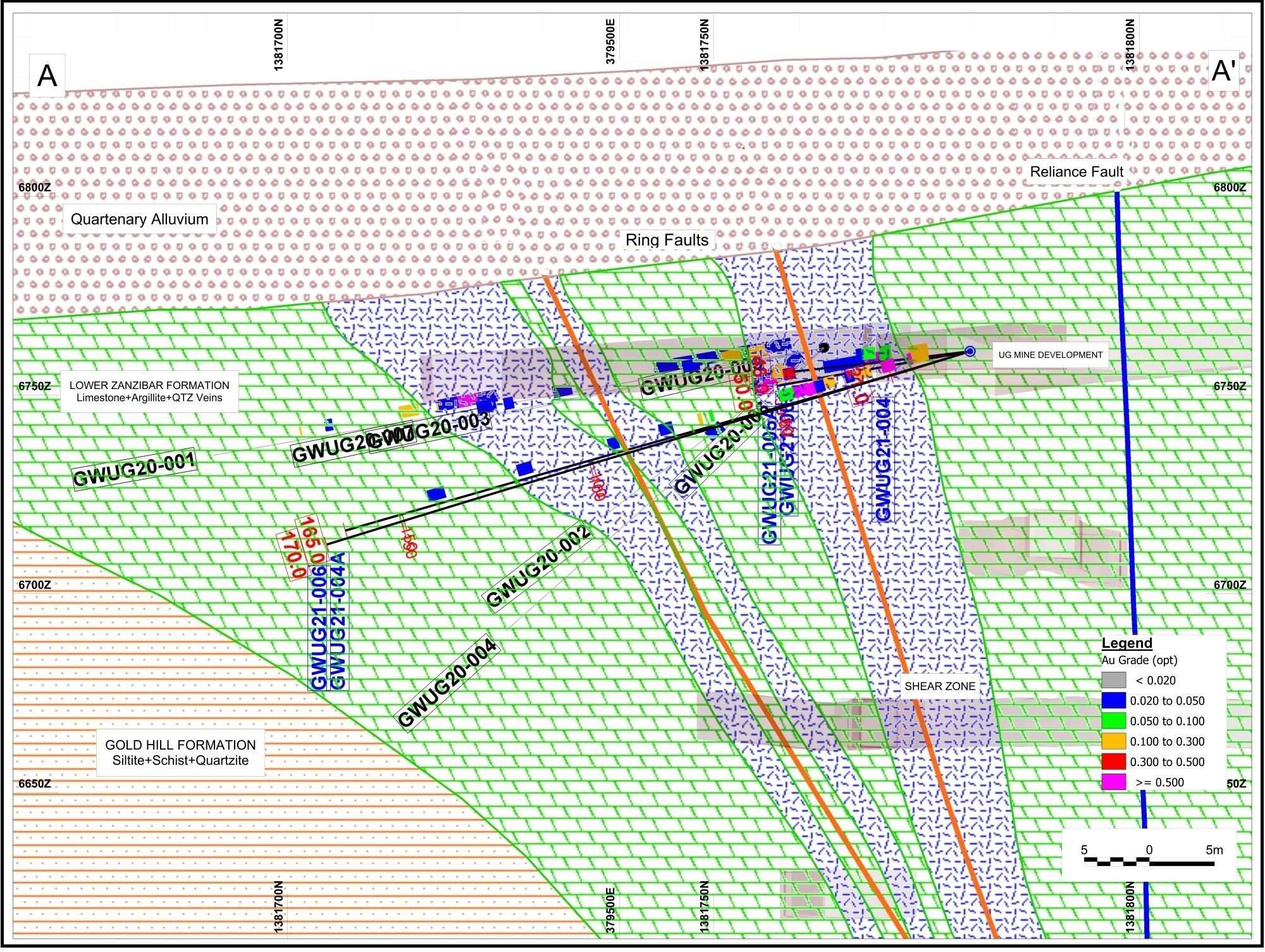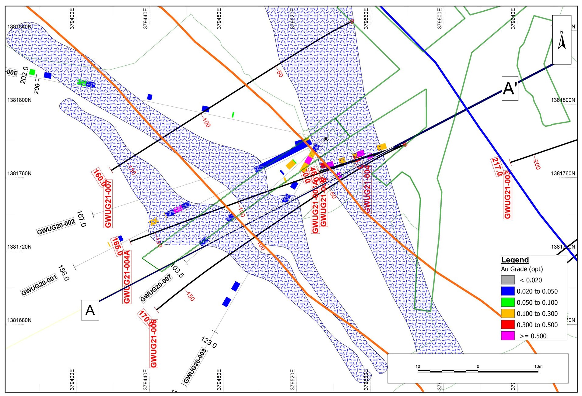 All holes presented in Table 1 were completed by NQ size diamond (core) drilling. Widths are presented as down hole core lengths; true widths are unknown at this time. Analytical results for holes 004, 004A and 005A were performed by American Assay Laboratory Inc. (AAL) in Sparks, Nevada, an ISO/IEC 17025:2005 accredited facility. Results for drillhole GWUG21-006* are from Scorpio Gold’s in-house analytical laboratory (by FAAA procedure), which does not have ISO/IEC 17025 accreditation but implements a quality management system compatible with the ISO/IEC 17025 standards and maintains a paperwork and LIMS trail suitable for future ISO/IEC 17025 accreditation. Certified assay results for GWUG21-006* from AAL are pending. Further details are presented in the Company’s quality assurance and quality control program for the Goldwedge project available at: GW QAQC.