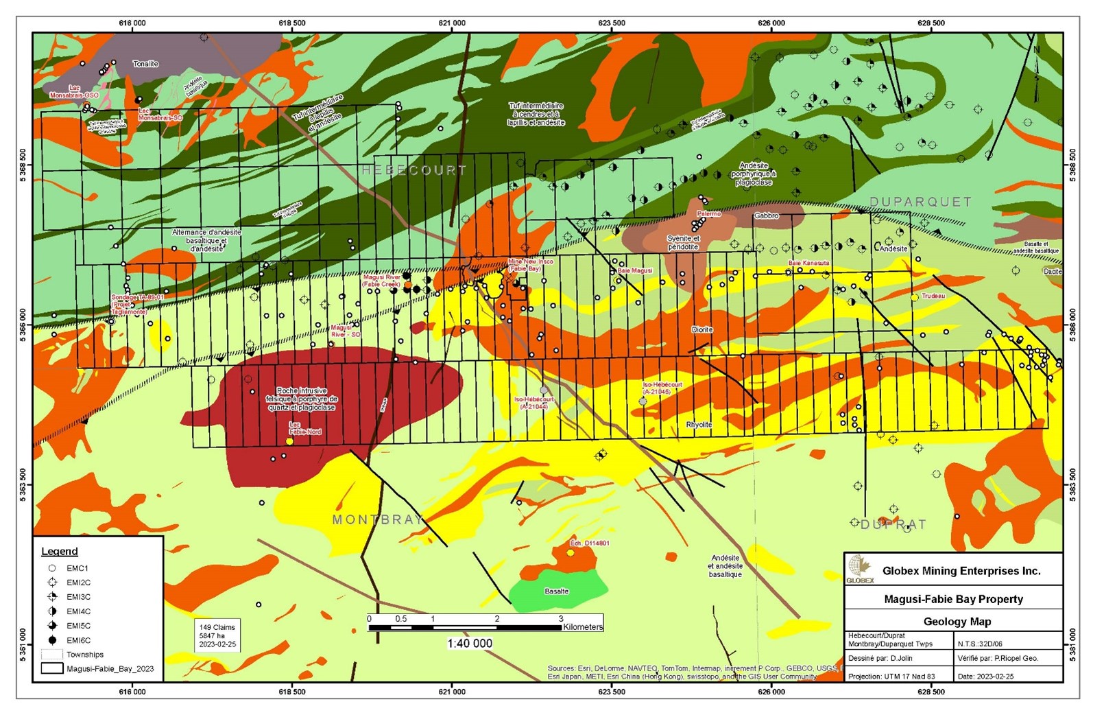 The Magusi property consists of 148 claims and one mining concession totaling 5,847hectares (14,448 acres) in Duparquet, Hebecourt and Montbray townships, Quebec. Under the revised terms agreed to on October 4, 2022, the transaction, if completed, will generate $6,550,000 cash and 7,500,000 Electro shares payable to Globex and $12,600,000 in work all over a 4-year period as well as a 3% Gross Metal Royalty (GMR), 1.5% GMR purchasable for $2,250,000.