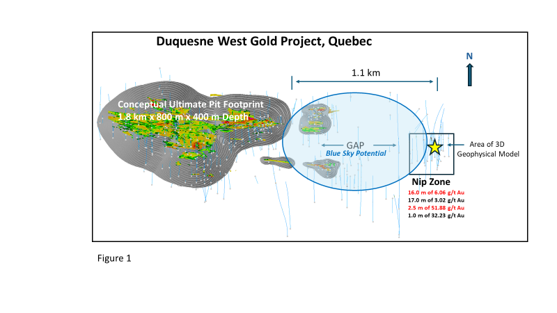 The remaining 5,500 metres will now focus on the NIP Gold Zone near the eastern boundary of the property and the area between the conceptual open-pit model and the NIP Zone (see Figure 1 below) with the focus of joining the two.
