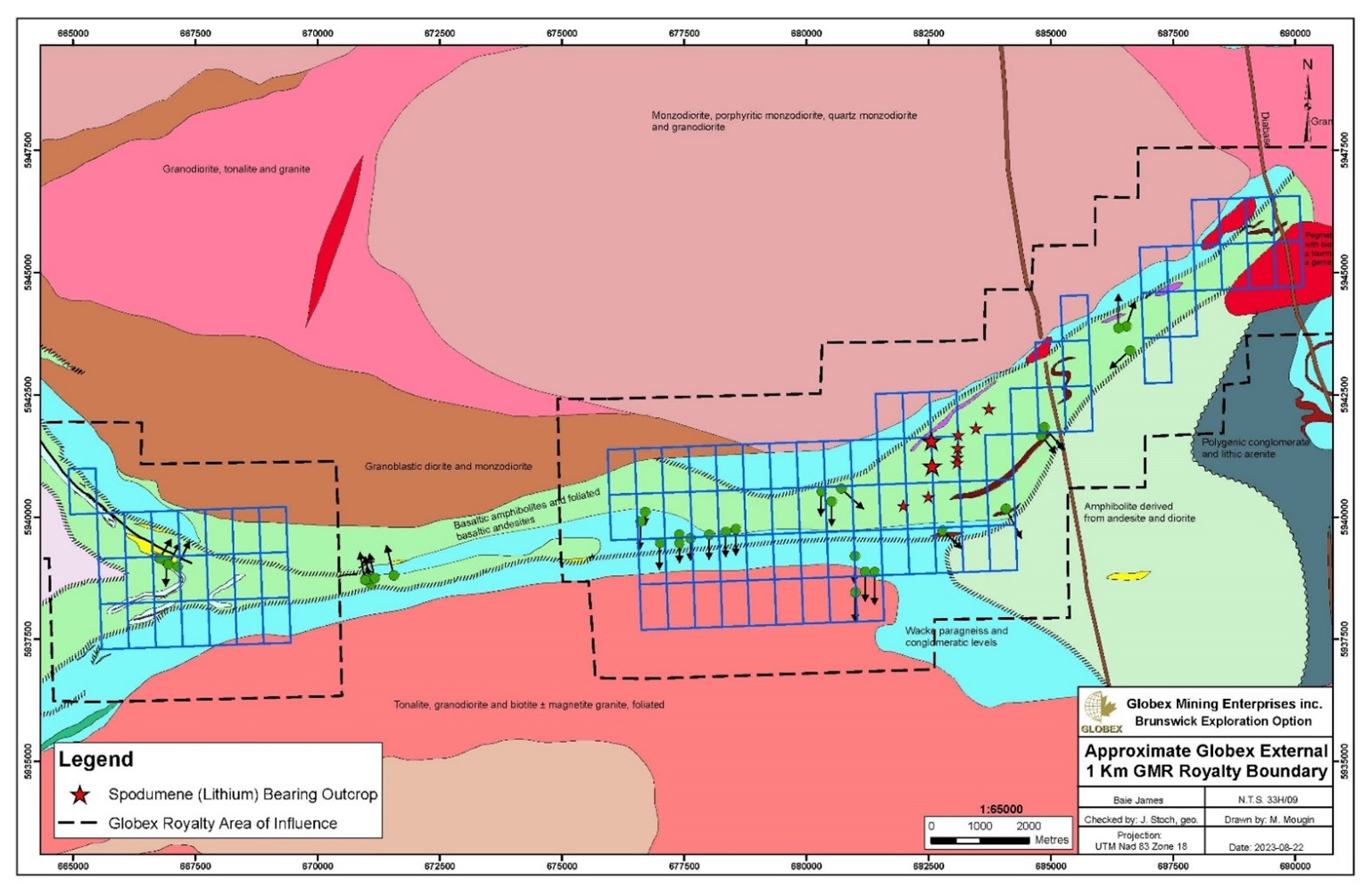 ROUYN-NORANDA, Quebec, Jan. 27, 2025 (GLOBE NEWSWIRE) -- GLOBEX MINING ENTERPRISES INC. (GMX – Toronto Stock Exchange, G1MN – Frankfurt, Stuttgart, Berlin, Munich, Tradegate, Lang & Schwarz, LS Exchange, TTMzero, Düsseldorf and Quotrix Düsseldorf Stock Exchanges and GLBXF – OTCQX International in the US) is pleased to inform shareholders that Brunswick Exploration Inc. (BRW-TSXV, BRWXF-OTCQB, 1XQ-FRA) has started a 5,000-metre drill program on Globex’s Lac Escale (Mirage) royalty property in the Eeyou-Istchee-James Bay region of Quebec. Globex retains a 3% Gross Metal Royalty on the Lac Escale claims and within a 1-kilometer area of influence around the claim’s external boundaries as well as a $100,000 per year advance royalty starting at the fifth year of the agreement.