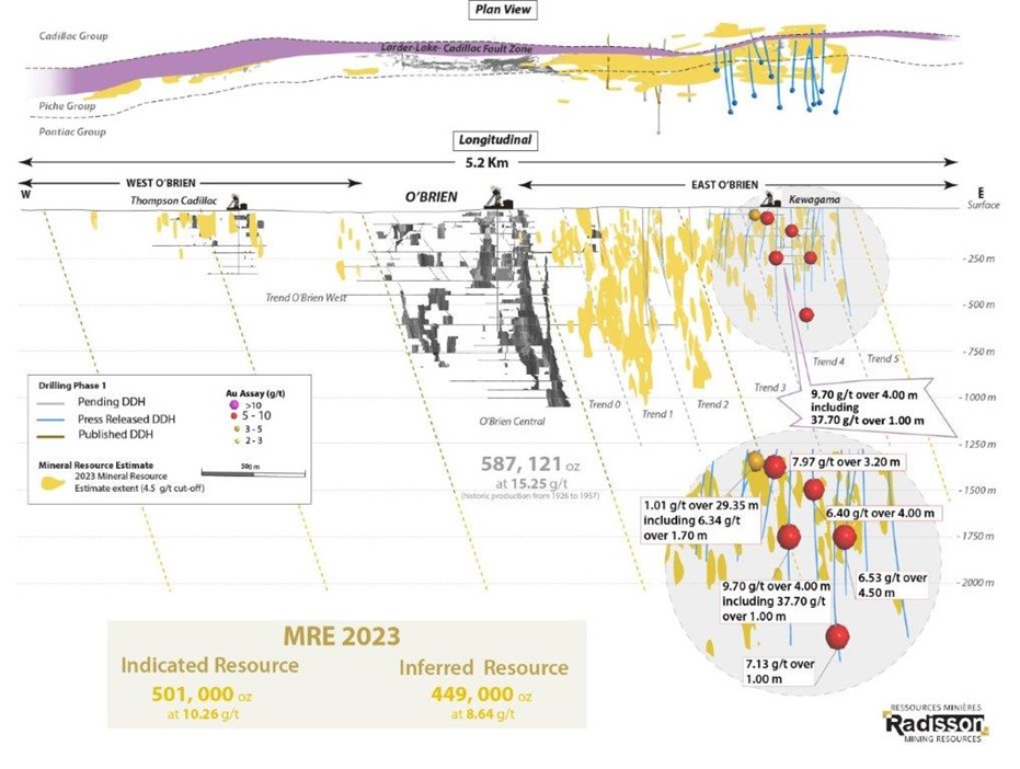 Globex is also pleased to report that Radisson Mining Resources Inc. announced on January 13, 2025, that they will be undertaking 22,000 metres of drilling on the O’Brien Gold Mine property at Cadillac, Quebec.
