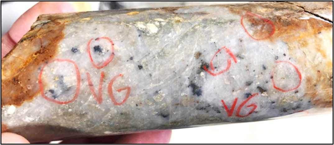 The high-grade gold discovery in hole WB22-66 is of particular interest. It was drilled in an area (gap) between the Lynx and the Pepitos Gold zones where the thickness of the overburden prevented stripping and trenching before drilling. More than 30 specks of visible gold (“VG’’) were identified in hole WB-22-66 (see Image 1) in an area that had not been sampled, indicating that the potential of the OGT, especially in this area, may be even higher than initially anticipated.