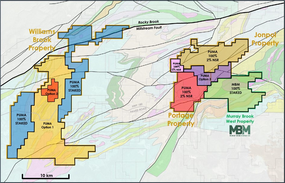 RIMOUSKI, Quebec, Dec. 15, 2020 (GLOBE NEWSWIRE) -- Puma Exploration Inc., PUMA-TSXV, (the “Company” or “Puma”) has proceeded with all the payments required to satisfy the first year anniversary options obligations for the properties included in its flagship Triple Fault Gold Project, New Brunswick (see Figure 1). The total cash payment of $30,000 with the issuance of 75,000 shares to optionees have satisfied all of the options agreement requirements to keep the agreement in good standing until April 2022 (see news releases dated 2020-04-06 and 2020-04-16 for detailed transaction terms).