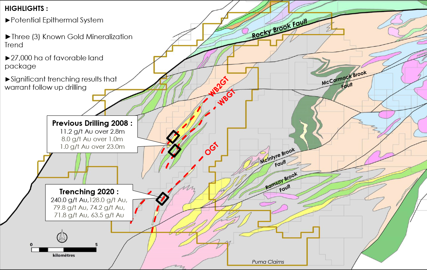 Marcel Robillard, President and CEO of Puma said : " It is amazing to see that every trench excavated along the O’Neil Gold Trend (OGT) has discovered significant new gold mineralization. The discoveries of these high-grade gold zones follows over 650 meters of trenching, demonstrates the high potential for a large epithermal gold deposit at Williams Brook.”