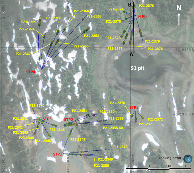 This release summarizes the assay results from 36 surface drill holes for a total of 6,010 metres at the Big Missouri deposit which were drilled in September and October 2021. Figure 1 illustrates the location of six drill pads around the S1 pit at Big Missouri. Figure 2 shows a 3D cross section illustrating the general results of the definition drilling.