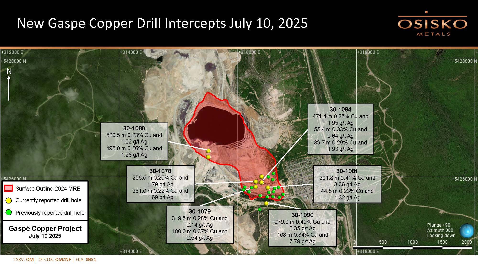 MONTREAL, July 10, 2025 (GLOBE NEWSWIRE) -- Osisko Metals Incorporated (the “Company or "Osisko Metals") (TSX-V: OM; OTCQX: OMZNF; FRANKFURT: 0B51) is pleased to announce new drill results from the Gaspé Copper Project, located in the Gaspé Peninsula of Eastern Québec.