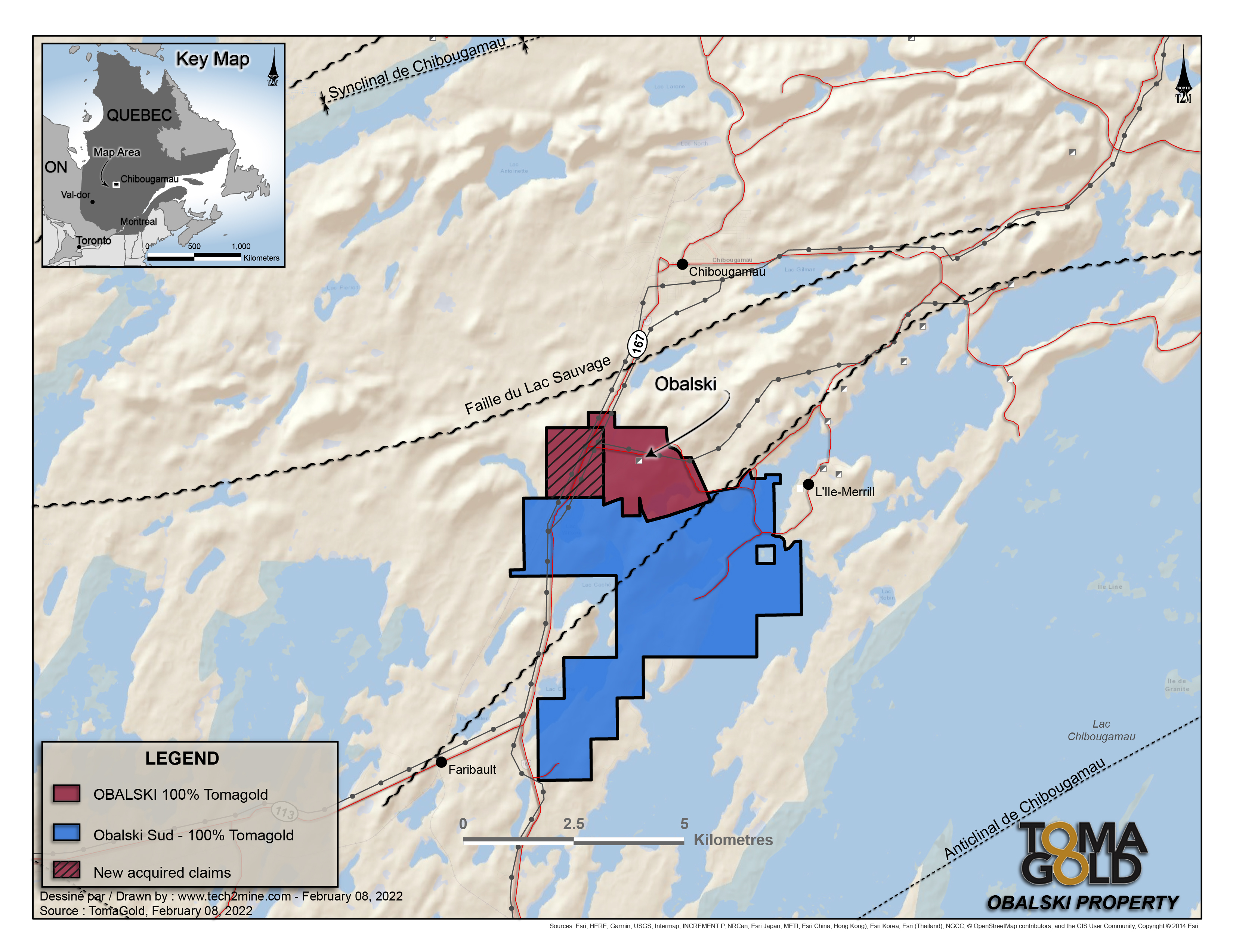 MONTREAL, Feb. 11, 2022 (GLOBE NEWSWIRE) -- TOMAGOLD CORPORATION (TSXV: LOT) (OTCQB: TOGOF) (“TomaGold” or the “Corporation”) is pleased to report the results for the first three holes of phase 2 of the 11,500-metre drilling program on its wholly-owned Obalski property in Chibougamau, Quebec.